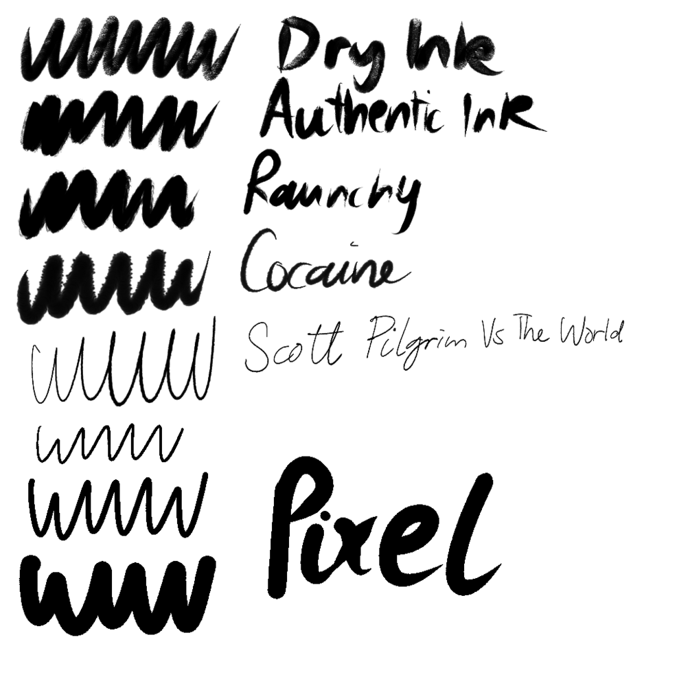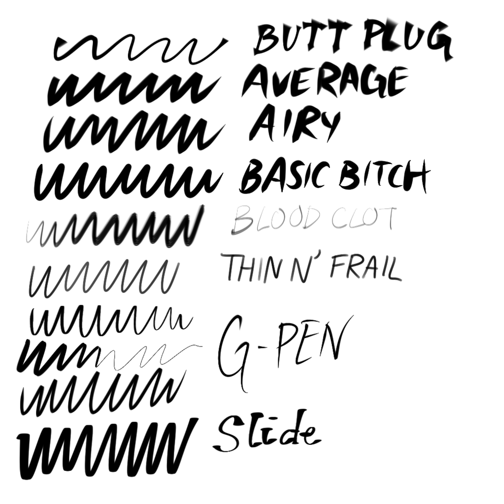Things to note: My brushes will look incredibly different depending if you’re using a stylus or your fingers. The reason the brushes may look different using fingers is because you’re applying all the pressure there is.